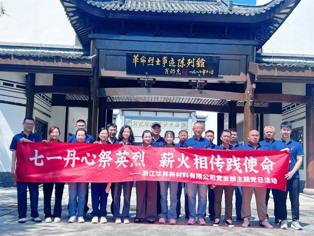 为缅怀先烈,传承红色精神,在中国共产党成立104周年之际,浙江华邦新材料有限公司党支部18名党员、发展对象和入党积极分子前往龙游革命烈士陵园,开展了“七一丹心祭英烈,薪火相传践使命”的七一主题党日活动。